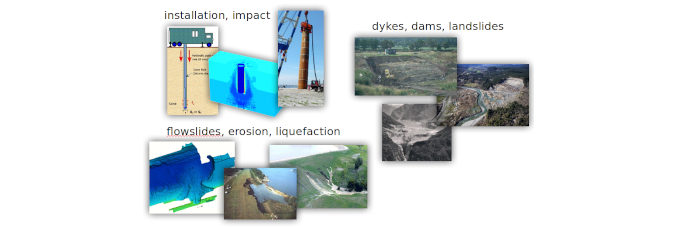 Anura3D is an open software based on the Material Point Method, particularly suitable for the simulation of problems with large displacements such as collapse of slopes, excavation fronts and retaining walls, installation of piles and anchors, shallow and deep foundations, impact of granular flows on structures etc. The code is developed by a community of researchers that also sees the participation of ICEA geotechnical researchers. The main area of interest is the modelling of large displacements soil-fluid-structure interaction problems.